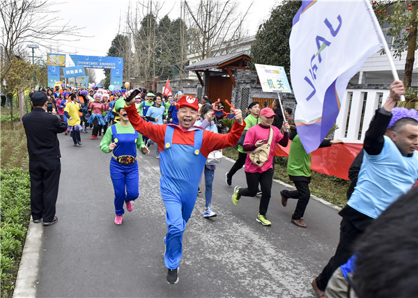 3月16日,“翡翠崇州 乐动花海”2019年第七届四川·崇州自驾赏花节暨‘传递快乐·相约健康’绿道彩妆跑在美丽的盆景之乡—严家弯湾拉开帷幕,本次活动由中共崇州市委宣传部指导,崇州市总工会、崇州市文化体育和旅游局主办,共青团崇州市委、崇州市观胜镇人民政府、四川环福体育协办。