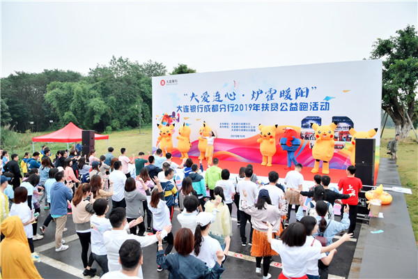 2019年10月13日,由大连银行成都分行工会,大连银行团委主办,四川环福体育经纪发展有限公司承办的"大爱连心·炉霍暖阳"大连银行成都分行2019年扶贫公益跑活动在青龙湖湿地公园隆重举行。本次活动共有来自大连银行各支行以及成都分行各部门的14支参赛队近四百人参赛,设男子青年组,女子青年组,男子中年组,女子中年组。最终决出了男子青年组前10名,女子青年组前10名,男子中年组前10名,女子中年组前5名。