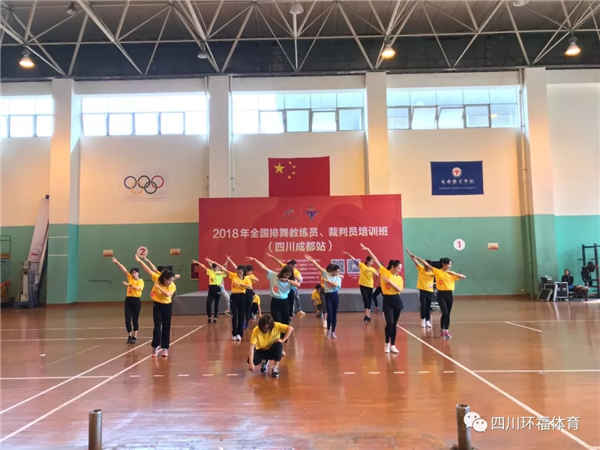 3月23日-25日,由国家体育总局体操运动管理中心、全国排舞广场舞推广中心主办,全国排舞广场舞推广中心四川省分中心、杭州佑嘉体育文化创意有限公司和四川环福体育经纪发展有限公司共同承办的“2018年全国排舞教练员、裁判员培训班(四川成都站)”在成都体育学院球类馆成功举行。