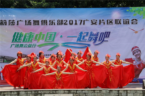 4月23日,由全国排舞广场舞推广中心四川分中心主办,成都莉莎广场舞俱乐部承办,华蓥群众舞蹈协会协办,成都麦芽守望科技有限公司、华蓥市艾贝尔艺术幼稚园赞助的“成都莉莎广场舞俱乐部2017广安片区联谊会暨‘健康中国 一起舞吧’广场舞公益行活动”在四川广安市落下帷幕。